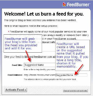 Sau khi điền các thông tin cần thiết, Feedburner sẽ chuyển sang yêu cầu bạn đặt một cái tên cho Feed đồng thời chọn một URL cho feed mới của bạn (VD của Egoldviet là http://feeds.feedburner.com/egoldviet ) Hãy Activate Feed sau khi bạn lựa được những cái tên vừa ý.