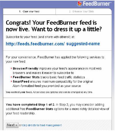 Sau đó Feedburner xác nhận link URL Feed mới của bạn. Từ bây giờ trở đi, bạn có thể quên đi URL feed cũ do platform tạo ra và sử dụng Url Feed này ở mọi lúc mọi nơi mọi hoàn cảnh () để xây dựng cho Blog của bạn.