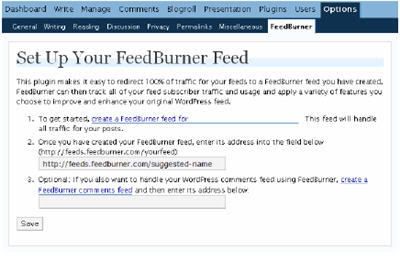 Chỉ việc download, cài đặt và kích họat, bạn có thể truy cập vào Option tại Wordpress và nhập vào các thông số để set up Feedburner Feed dễ dàng từ Blog Wordpress.